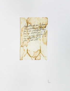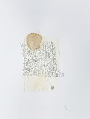 Pas à la graisse de canard mais aux sachets de thé. L’appartement où j’habite n’est pas le mien, je ne possède pas non plus les livres présents dans la bibliothèque. Je trouve Levée d’écrou de Luca et j’intègre des fragments dans les mini-minimalistes dessins que je fais avec des sachets de thé. Heureux mariage entre sachet-enveloppe et lettres écrites à personne… Insoutenable légèreté à fleur de peau. Délicat. Délicatement. Les lettres à un certain Monsieur inconnu – Luca a eu la fleur de ma peau.
